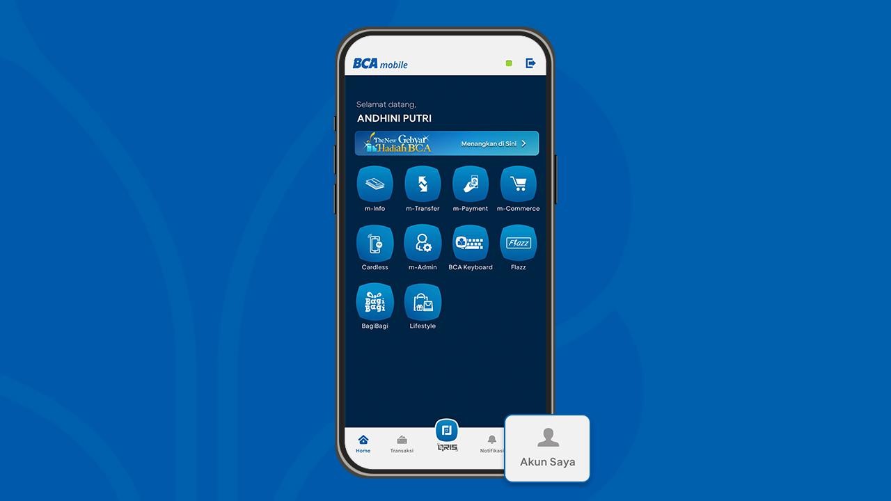 - Login ke BCA mobile dan pilih menu Akun Saya di pojok kanan bawah