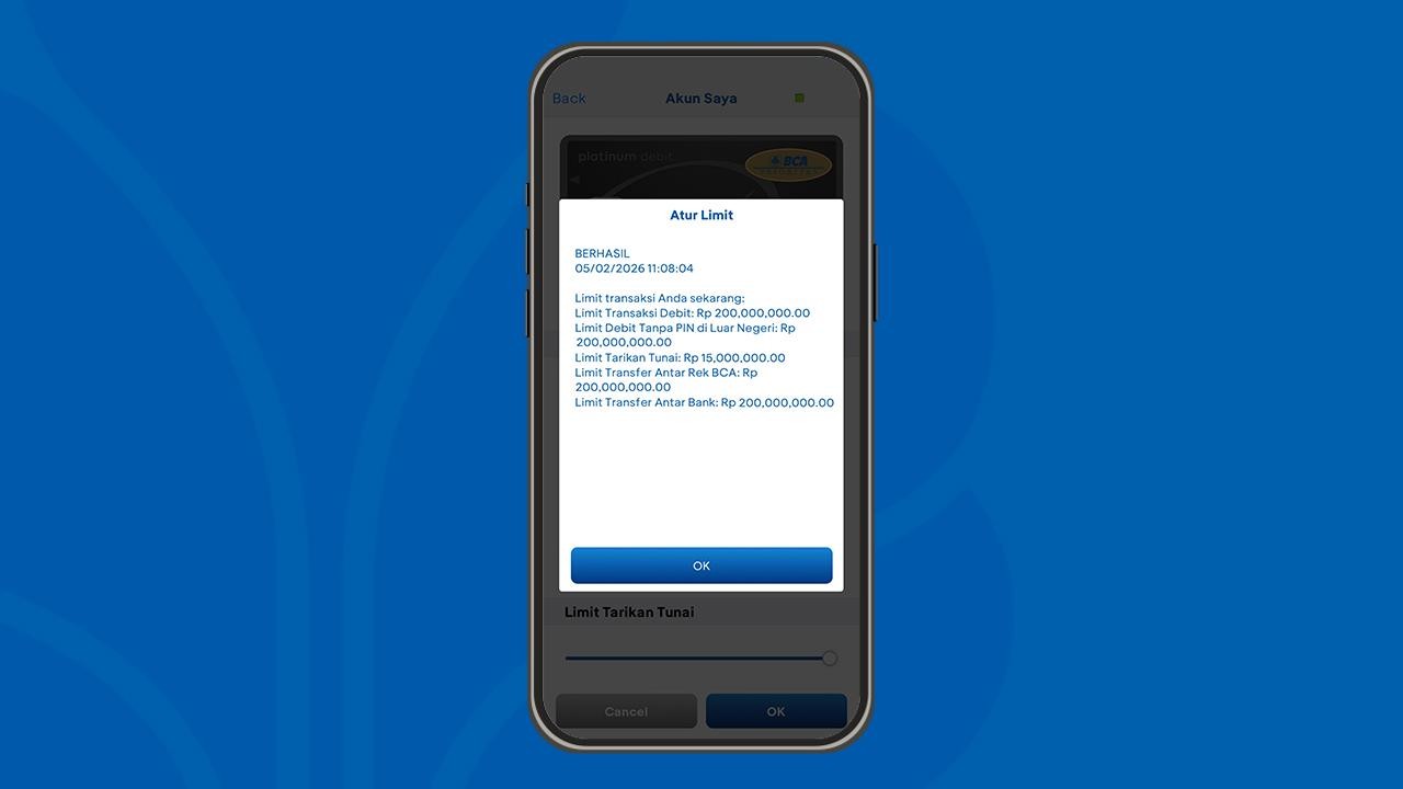 - Atur Limit Kartu Debit BCA berhasil dilakukan