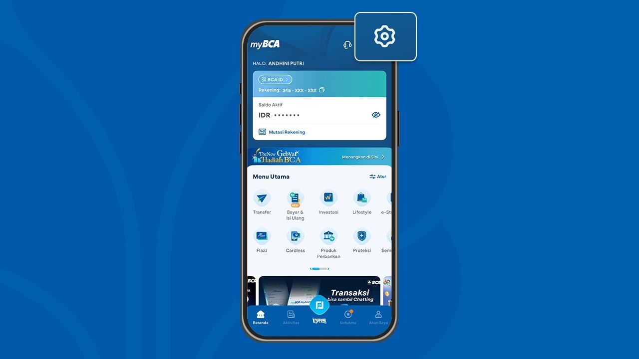 - Login ke myBCA dan pilih icon Pengaturan di pojok kanan atas