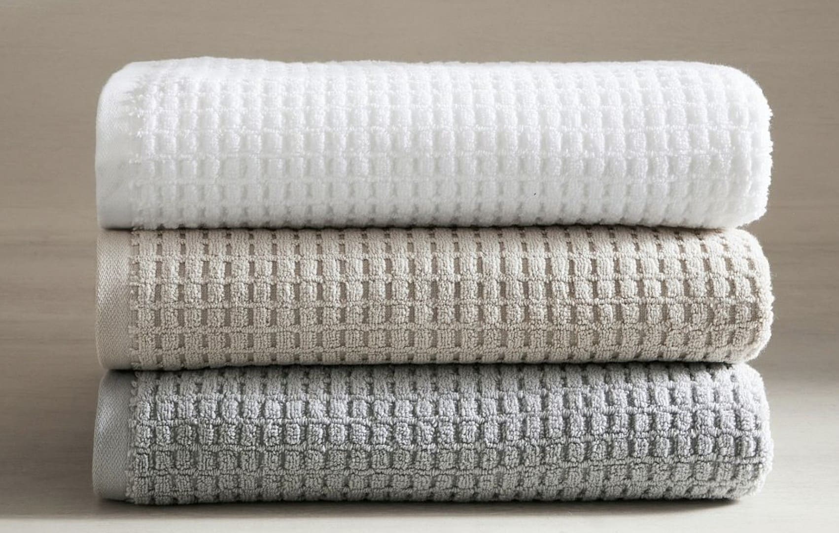 Handuk Pottery Barn Terry Waffle terbuat dari 100% katun yang memadukan kesan ringan dan kemewahan dengan daya serap tinggi serta ketahanan luar biasa terhadap noda dan penggunaan berulang. Meski waktu pengeringannya agak lama dan sedikit kehilangan kelembutan setelah dicuci, desain loop gantungan membuatnya tetap praktis dan elegan.