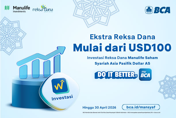 (06/03/2026), Nasabah BCA Solitaire & Prioritas, manfaatkan kesempatan mendapatkan unit penyertaan Reksa Dana Manulife Saham Syariah Asia Pasifik (Mansyaf). Pembelian Mansyaf dapat dilakukan melalui myBCA dan/atau Kantor Cabang BCA yang melayani investasi.