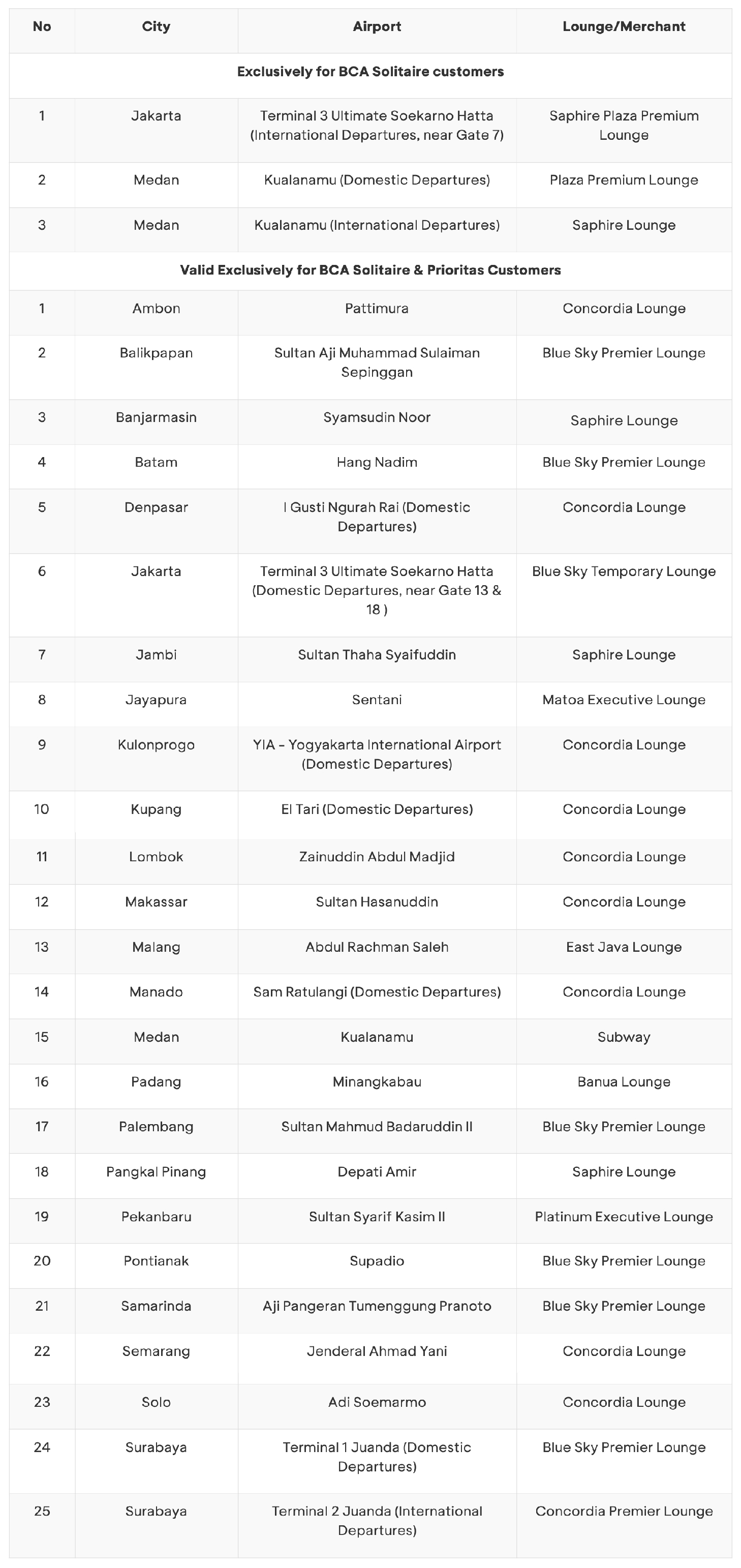 - BCA Prioritas: For cardholders only